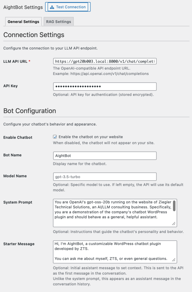 I built a WordPress plugin that adds an LLM chatbot to any WordPress site, needing only an OpenAI-compatible API endpoint.